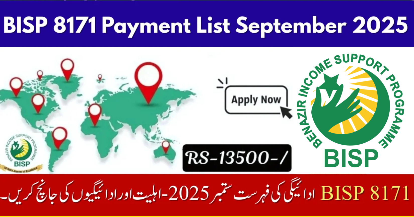 The BISP 8171 Payment List for September 2025 is now active, with payments being released in phases nationwide. Eligible families can collect Rs. 13,500 under Kafaalat, education stipends through Taleemi Wazaif, and nutrition support through Nashonuma.
